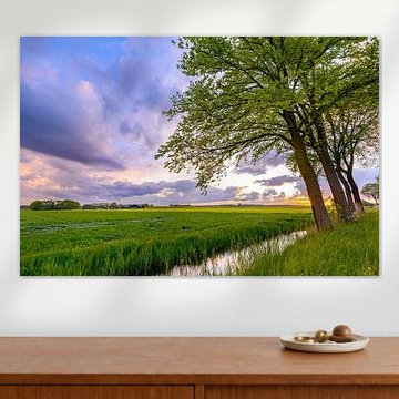 Sunset over a field with trees in spring by Sjoerd van der Wal Photography