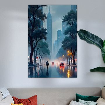 Watercolor Landscape with Bare Trees and Rolling Hills