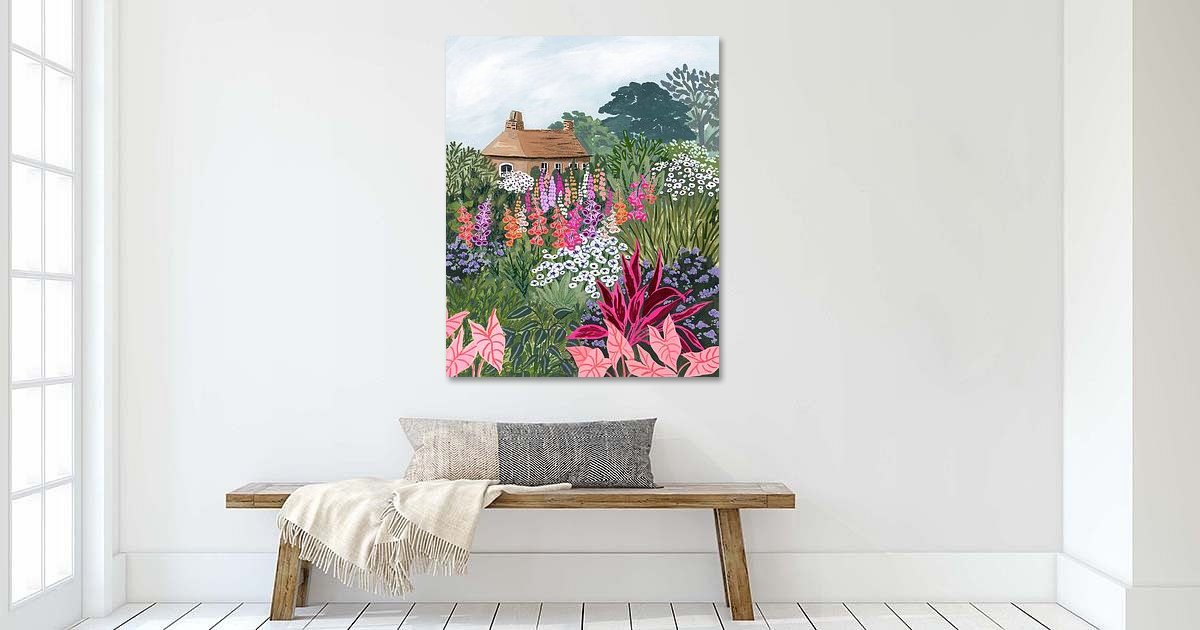 Walking through Sarah Gesek's paintings feels like a journey through the world's most beautiful places. This American artist captures nature's power in vibrant colors that directly touch your heart. From Icelandic mountain peaks in soft blue and purple tones to lush gardens full of bright pink flowers - each work shows her deep love for nature.