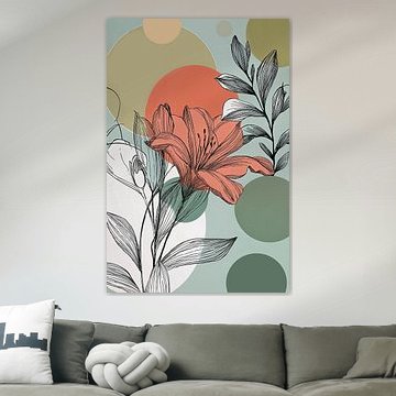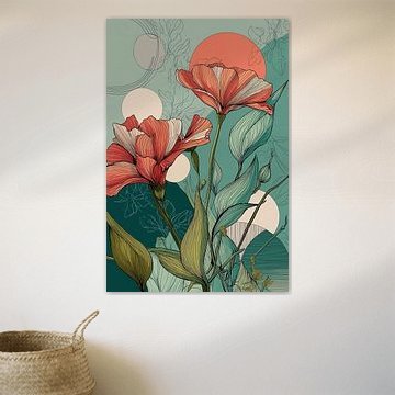 3. Botanical Illustration in Coral and Petrol no. 4