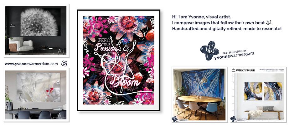 My work is like a musical composition, composed of many layers, rhythms and structures, with room for improvisation. The patterns play, the colours bloom and the shapes dance, usually in harmony and sometimes not :-) Whether it is a pattern, a picture or a painting, each design has its own rhythm, its own harmony and its own flow.