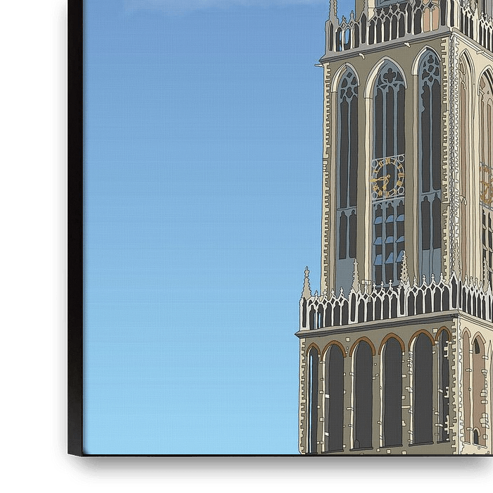 A first version, printed large and beautifully framed hangs at Domstad Slaapspecialist on Mariaplaats 4 in Utrecht. My son-in-law is the manager there. At his request, I added the clouds.