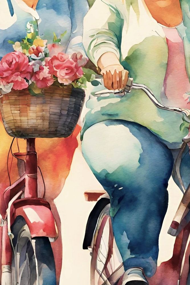 Buy this digital art artwork 2 cosy ladies' bikes by De gezellige Dames as a reproduction on canvas, ArtFrame, poster and wallpaper, printed on demand in high quality.