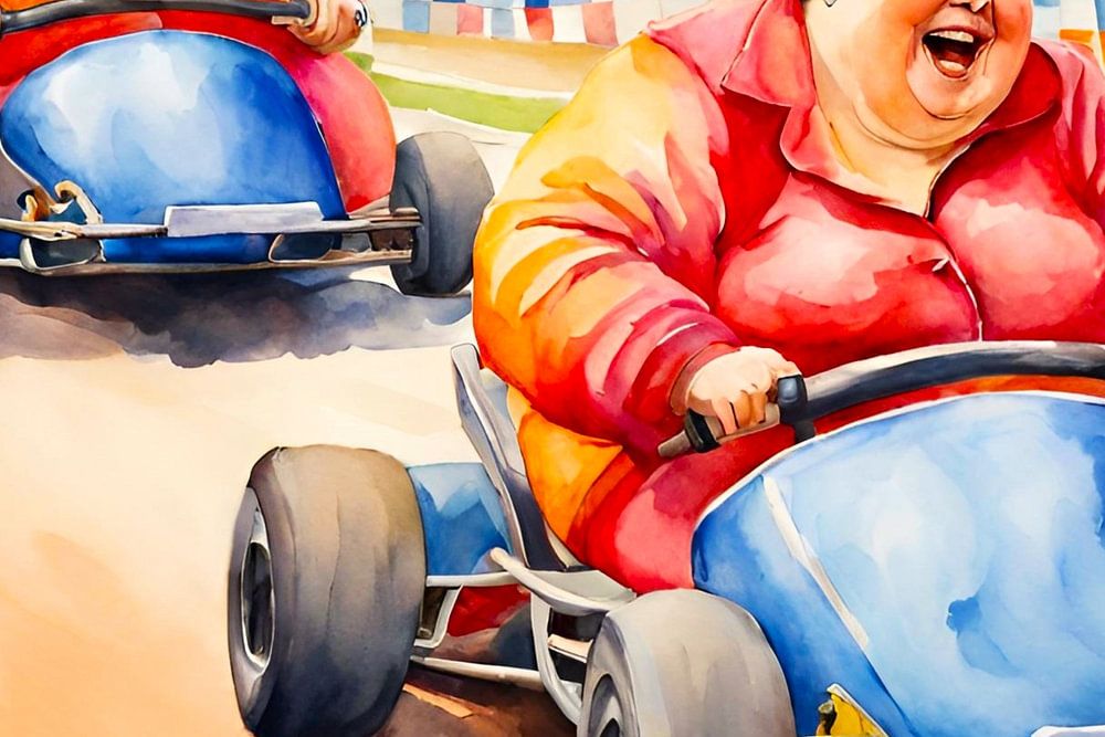 Buy this digital art artwork 2 ladies on the karting track by De gezellige Dames as a reproduction on canvas, ArtFrame, poster and wallpaper, printed on demand in high quality.