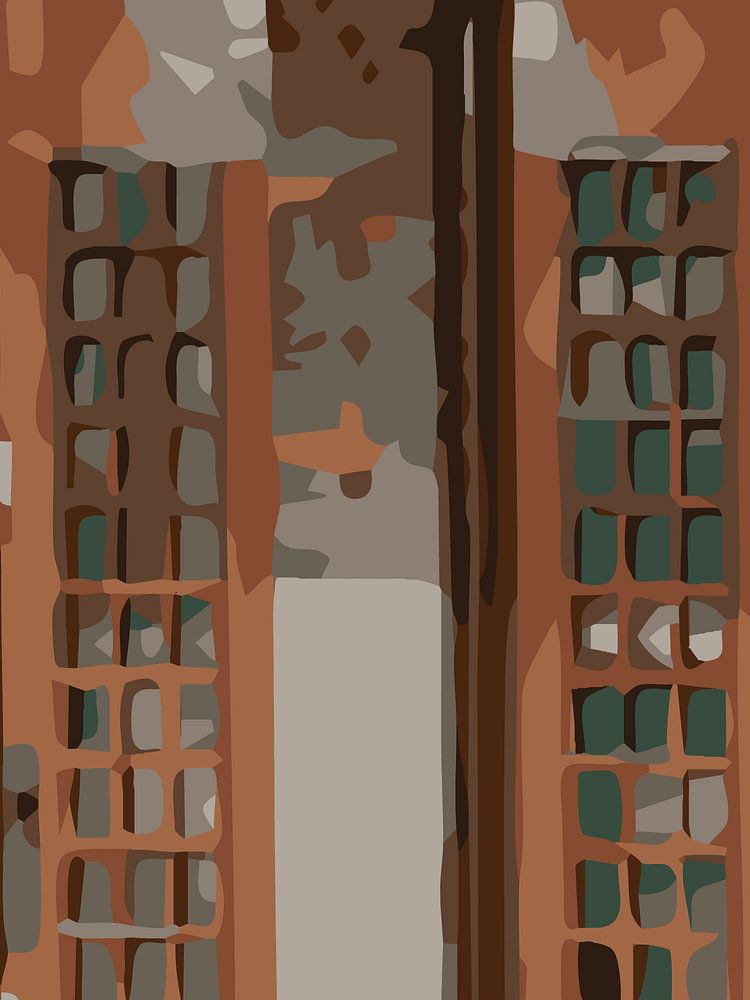 At the centre of the sculpture is a pillar that emphasises the symmetry of the two doors. This structure gives the composition peace and balance. The work exudes nostalgia and evokes memories of an era when public buildings played a central role in city life.