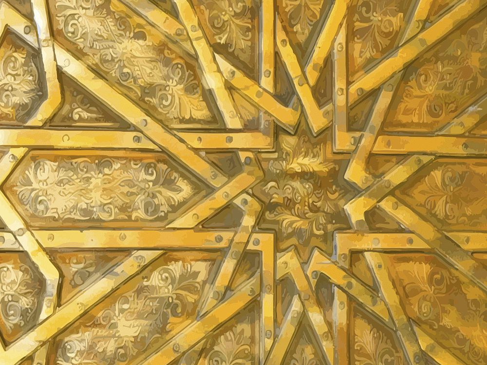 Within the planes, ornate ornaments sparkle, like secret stories whispering softly under the sheen of metal. They are reminiscent of ancient manuscripts, carefully engraved in a language that seems lost yet evokes deep recognition. Each motif breathes an echo of ancient civilisations, where art and mathematics went hand in hand to make the divine tangible.