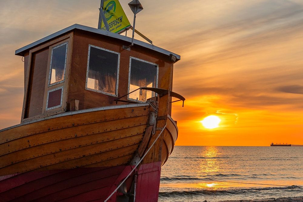 Fishing cutter on the beach of Ahlbeck, Usedom Island, Baltic Sea, Mecklenburg-Western Pomerania, Germany