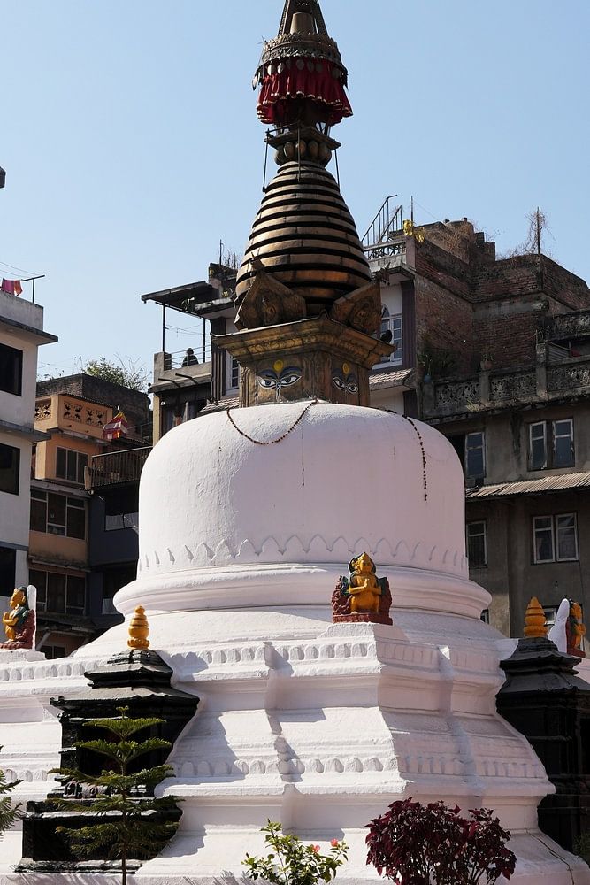 This magnificent white stupa stands proudly in the heart of Kathmandu, surrounded by ancient and modern buildings that bear witness to the unique blend of tradition and urbanisation in Nepal's capital. With the famous eyes of the Buddha on its golden top, it symbolises wisdom and spiritual awakening. Small statues and pots of plants carefully arranged around its base add a touch of serenity and respect to this place of worship. Under a brilliant blue sky, this stupa exudes an atmosphere of peace and timelessness, despite the daily hustle and bustle of the city that surrounds it. These Buddhist shrines, scattered throughout Kathmandu, are places of prayer and meditation where the faithful come to make offerings and recite mantras. They are a reminder of the importance of Buddhism in Nepalese culture and the spiritual heritage deeply rooted in everyday life.