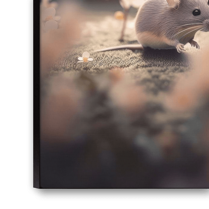 This fine art ai image shows the hidden beauty of a cute little mouse in an enchanting setting of flowers. With beautiful depth-of-focus and soft colours, the little mouse is captured in a dreamy setting surrounded by floral splendour. The image reflects the delicate and poetic side of nature, with the little mouse acting as an unexpected but enchanting protagonist. A perfect work of art for lovers of fine art photography and the subtle beauty of nature. For questions, feel free to contact us!