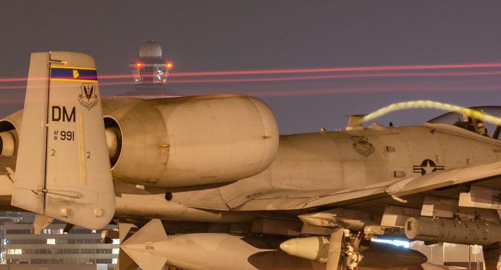 A Fairchild Republic A-10 Thunderbolt II (Warthog) stays overnight at Schiphol-East.
