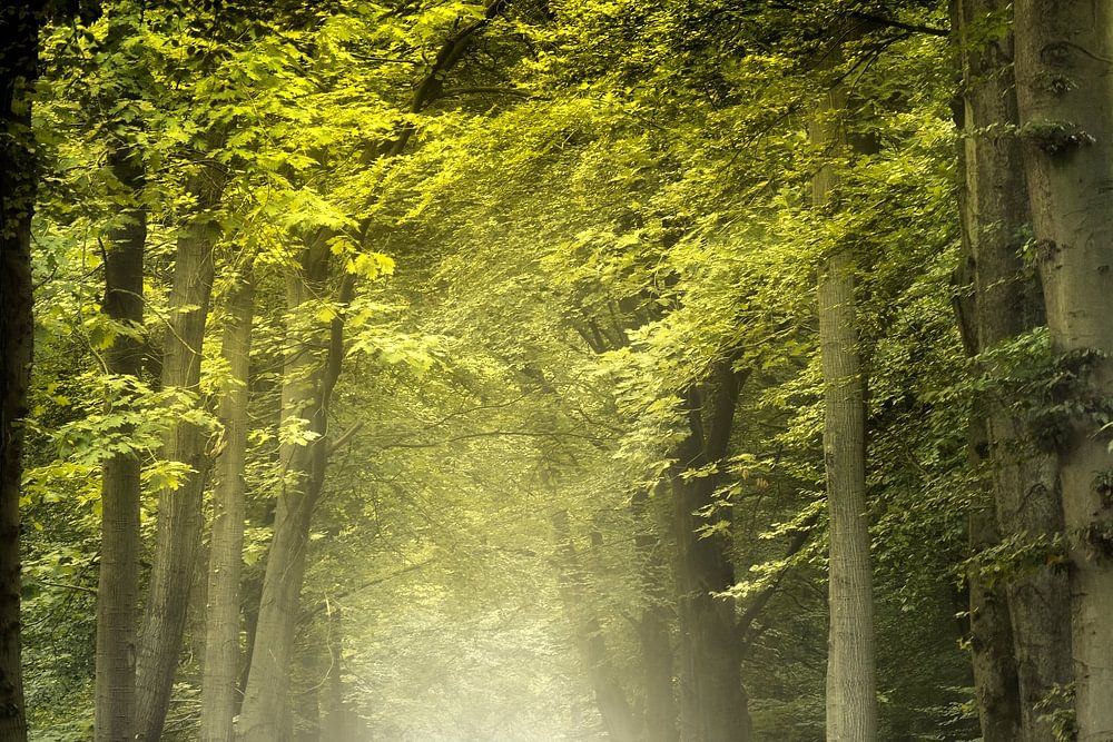 Dutch summer forest with fog