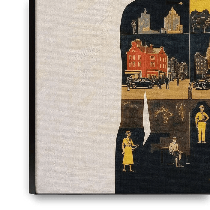 This collage is my way of celebrating the spirit of exploration and showing how travel has a huge impact on us.At the heart of the piece is the outline of a woman, representing all of us as tourists – a universal figure. She's standing against a blank white background, which represents endless possibilities, and her perspective is as…
