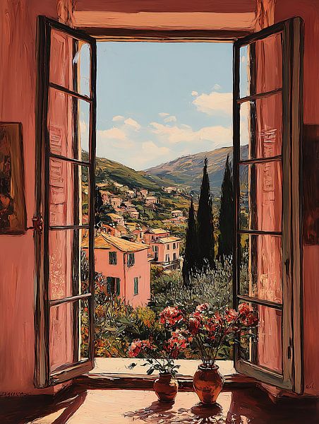 Mediterranean view from an open window, Mediterranean Sea, Italy, Spain