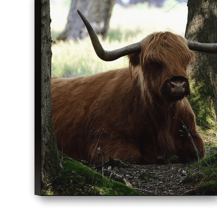 I took this photo of a Scottish Highlander in the Goois Nature Reserve near Hilversum. This Scottish Highlander was lying quietly when I took this picture, probably this Scottish Highlander had just eaten. Given the beautiful weather with summer temperatures, this bovine was lying in the shade of the trees. In the background you can still see a piece of the heathland that is in the area. I have chosen to take this photo in portrait mode to show the height of the trees, further I have chosen to overexpose the background so that the Scottish Highlander is well exposed.