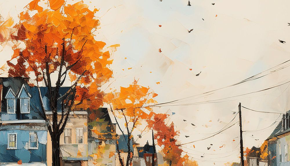 This painting is part of a series titled "A Tapestry of Tradition and Modernity," which explores the beauty and charm of town streets that blend the old and the new, the cultural and the natural.