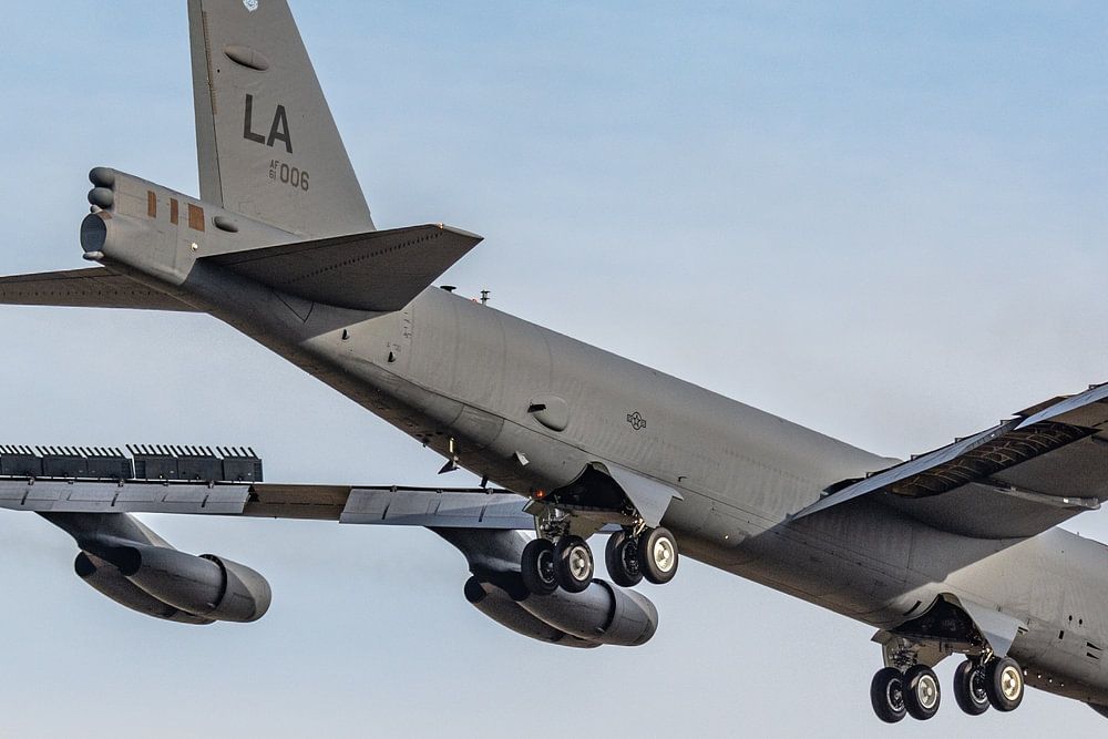 A United States Air Force Boeing B-52 Stratofortress photographed just before landing at Barksdale Air Force Base (Louisiana).