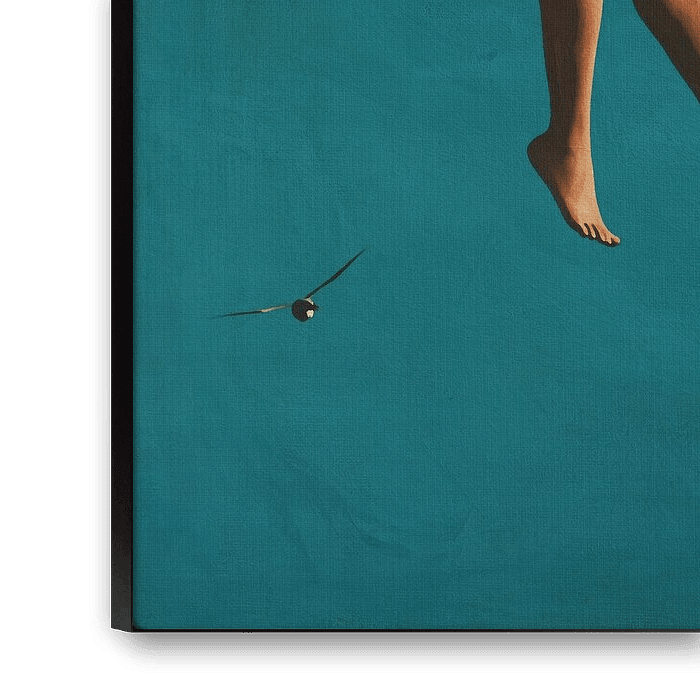 A woman sitting on a diving board is just as much a depiction of the female experience as it is a look into the early 1960s. Jan Keteleer blended his craftsmanship with his love of art and science to create this work of art. One can't help but feel that the idea of a woman diving out into the blackness of the ocean during a thunderstorm or falling from a great height while in flight is far more appealing than the stiff business of everyday life. It's hard to imagine that such a brave and adventurous individual would ever need to find a way to get herself off a diving board, but that was exactly how artist Jan Keteleer found himself while working on this oil painting.