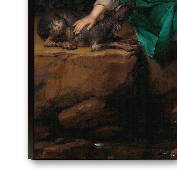 Born in Amsterdam, Van der Mijn found his way via Düsseldorf and Antwerp to London, where he built a successful career with his finely painted portraits and scenes. The latter almost always feature a female figure in a landscape, and sometimes include a reference to a story from the Bible or Classical mythology. Whether this woman is a religious or a mythological figure is not known.