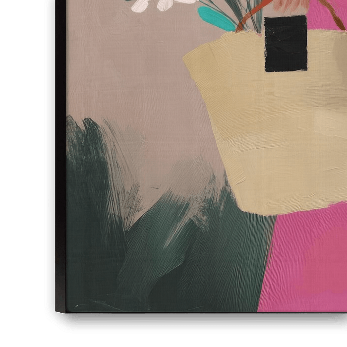 Sometimes beauty is in the smallest gesture. In this work, you see a hand holding a basket with a colourful bouquet - no excess, no fuss. The background is soft and warm, the flowers speak for themselves. This is an ode to tenderness, attention and those moments when you sneak a pause. Perfect for those who love understated art with feeling combined with distinct, eclectic colours.