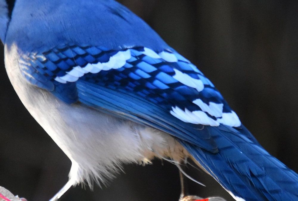 A blue jay at the feeder in autumn, Sainte-Apolline, Quebec, Canada