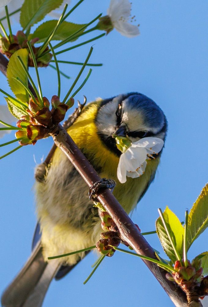 Buy this bird art A blue tit with a blossom by Andrew Fotografie on canvas, ArtFrame, poster and wallpaper, printed on demand in high quality.