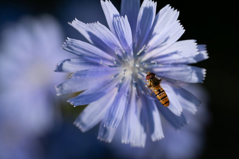 Buy this flower art A blue vetch with a hoverfly by Ulrike Leone on canvas, ArtFrame, poster and wallpaper, printed on demand in high quality.
