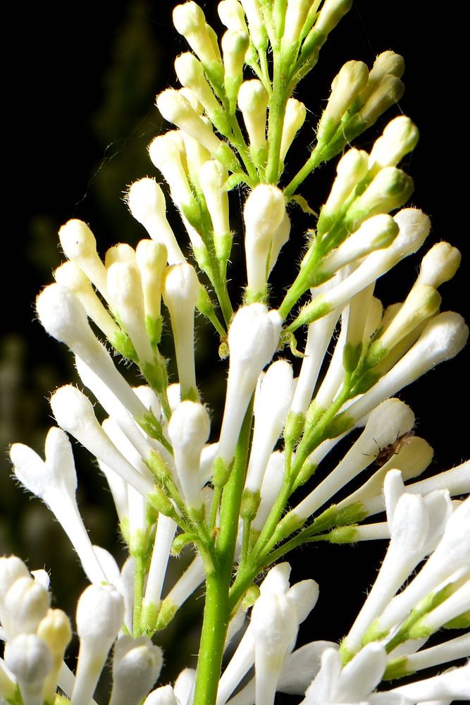I took this photo in the backyard, the bush that these little flowers are on is in a pot on the patio so I could easily get them in the photo. For this photo I used a flash on which I also put an empty chip can as a homemade snoot so I could direct the light better. I did not have the flash on my camera but on a camera tripod so that I flashed off-camera as in strobist photography. I also used a macro lens to take this picture. If you look closely you can see another cluster of white flowers in the background. I just don't know what kind of flowers they are, they are nice to photograph though. I just don't know what bush it is, the bush these flowers are from is a cutting from another bush in the front yard.