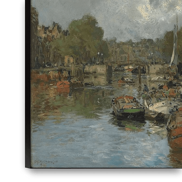 Buy A busy canal, Rotterdam, Johan Hendrik Van Mastenbroek as a reproduction on canvas, ArtFrame, poster and wallpaper, printed on demand in high quality.