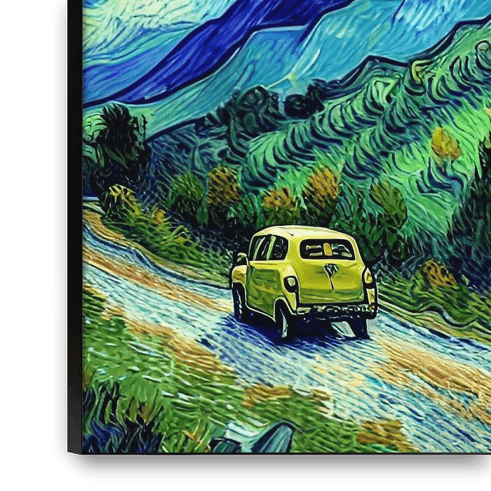 Buy this digital art artwork A car through hill landscape by Renato Daub as a reproduction on canvas, ArtFrame, poster and wallpaper, printed on demand in high quality.
