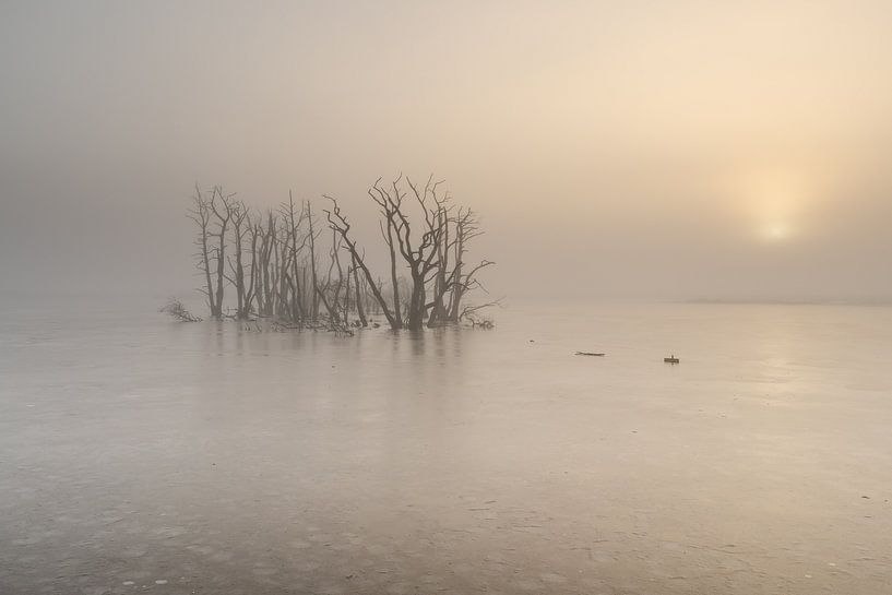 Buy this landscape artwork A cold, foggy sunrise by Rinie Fokkema on canvas, ArtFrame, poster and wallpaper, printed on demand in high quality.