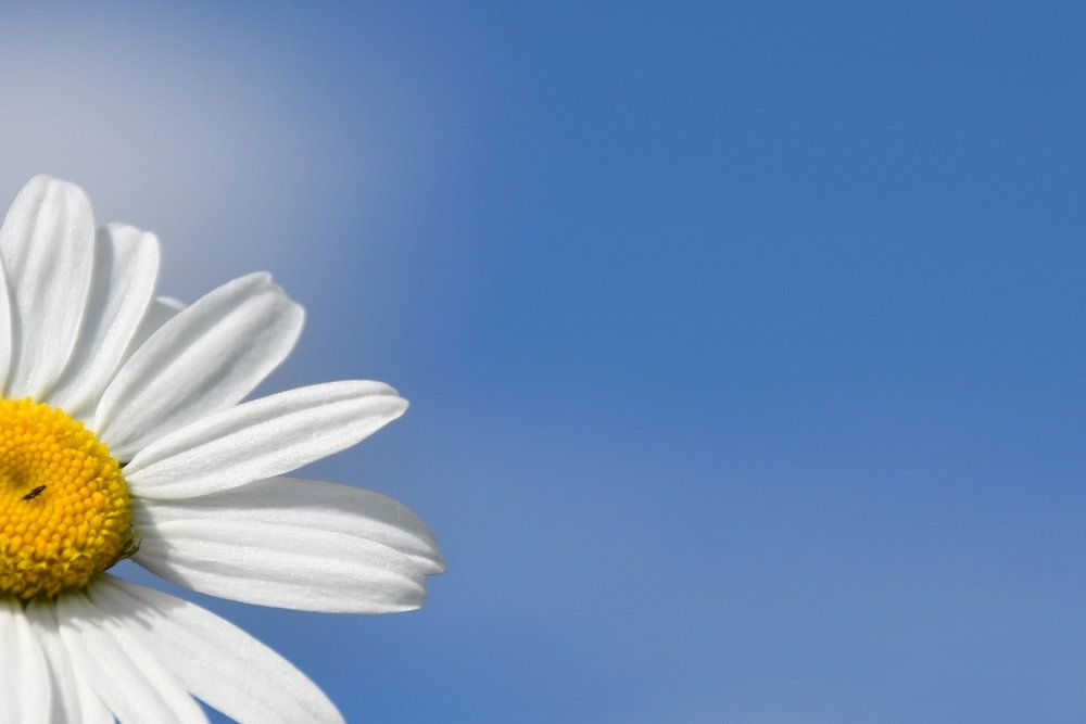 A daisy under a blue sky, Sainte-Apolline, Quebec, Canada