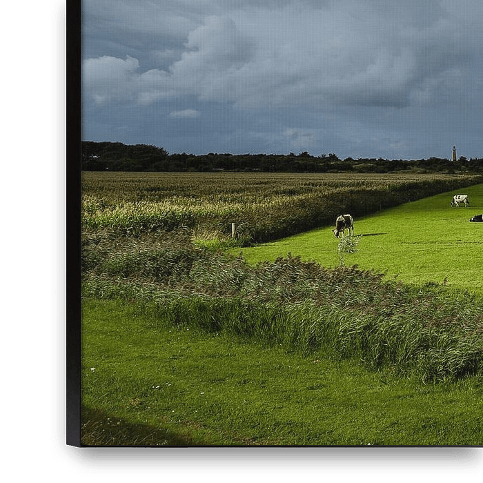 Buy this landscape artwork A downpour above Schiermonnikoog by John Verbruggen on canvas, ArtFrame, poster and wallpaper, printed on demand in high quality.