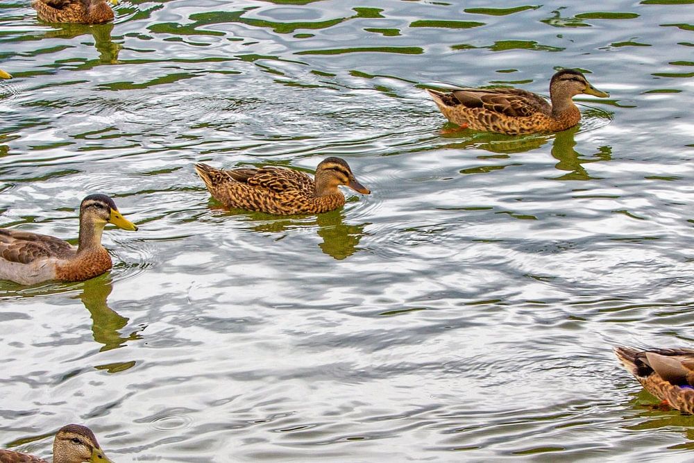 Buy this bird art A duck gathering by Christa Kramer on canvas, ArtFrame, poster and wallpaper, printed on demand in high quality.
