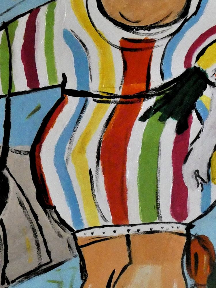 In this canvas, people see a fat lady with a bunch of tulips and 2 bags.Matriaaldis canvas is canvas and is painted with acrylic paint.Painted from an example.Size 60 by 70.