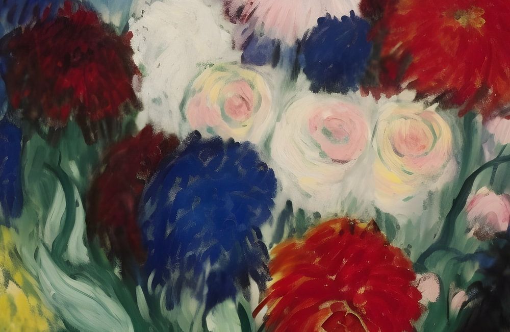An impression of a field bouquet of flowers. Inspired by the style of Kees van Dongen.