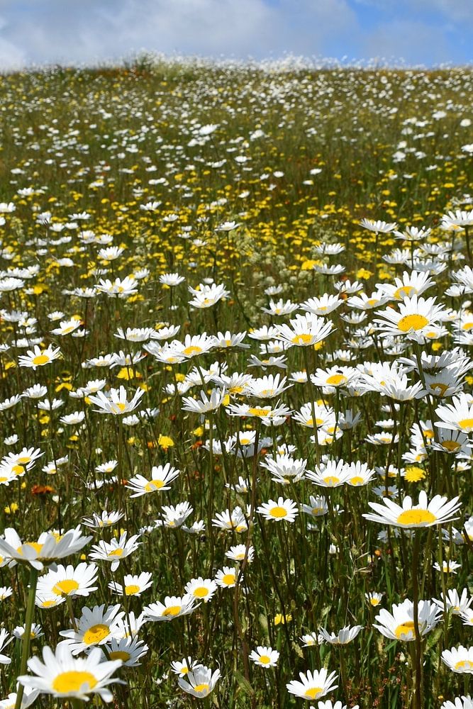 About "A field in bloom under a blue sky"