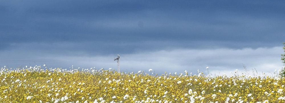 About "A field in bloom under a stormy sky"