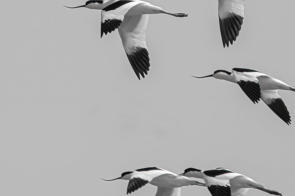 Buy this landscape artwork A flight of avocets by Peter Bartelings on canvas, ArtFrame, poster and wallpaper, printed on demand in high quality.