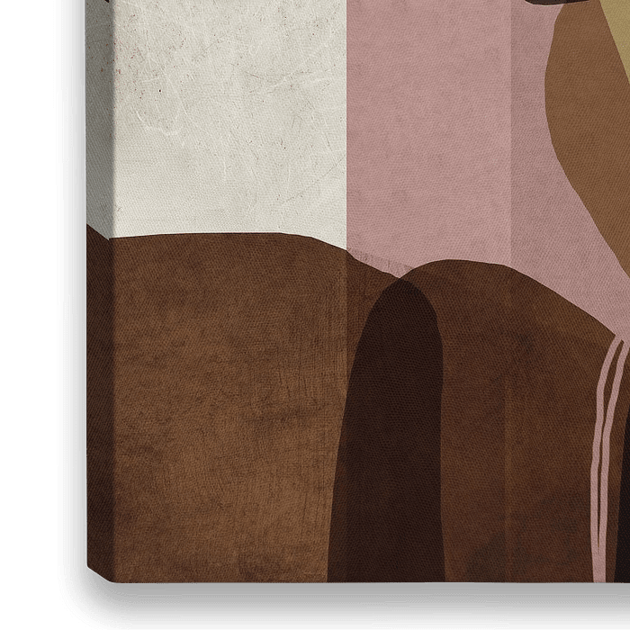 Abstract minimalist artwork with geometric shapes, modulated lines and shades of dark gray, pink and brown.