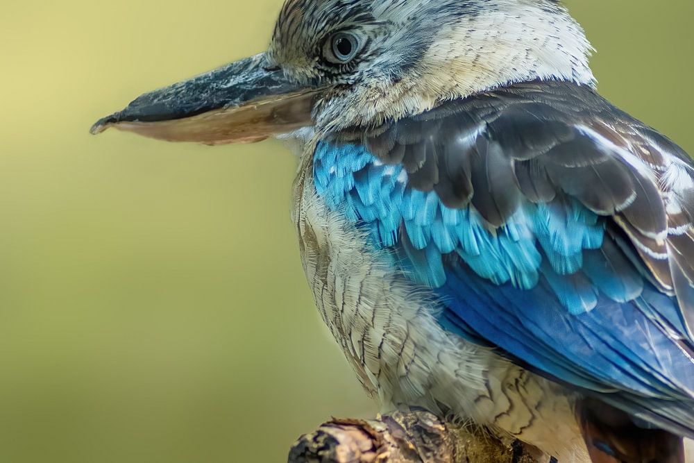 A hunter kingfisher bird sits on a branch on a sunny summer morning