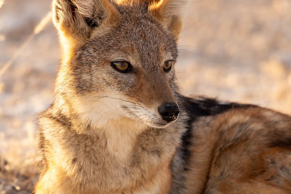 About "A jackal is relaxing in the last sunlight of the day"