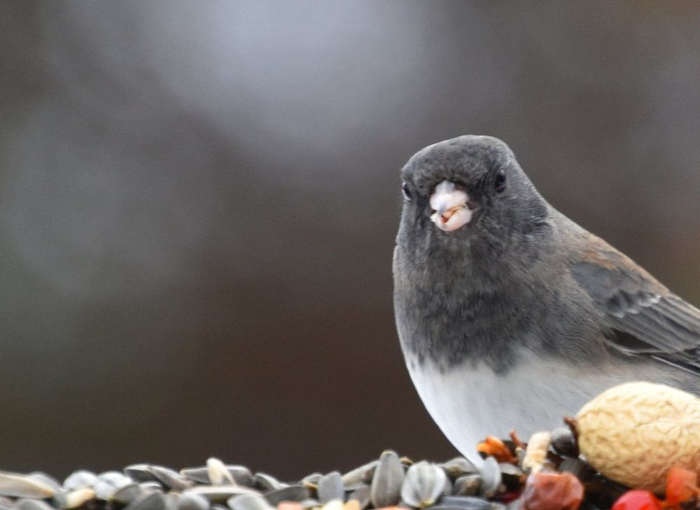 A junco bird at the feeder, Sainte-Apolline, Quebec, Canada