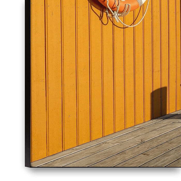 This lifebuoy stands out nicely on the yellow wall of the building. This one shows its usefulness as immediately after it you see the blue waters of the Lofoten in Norway.