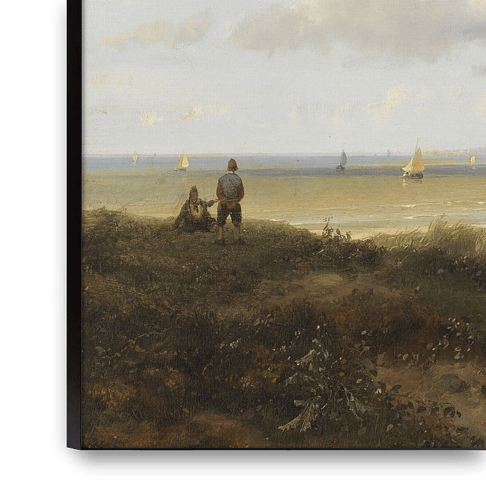 Buy A lighthouse and fishermen's houses in the dunes, the sea in the distance, Andreas Schelfhout as a reproduction on canvas, ArtFrame, poster and wallpaper, printed on demand in high quality.