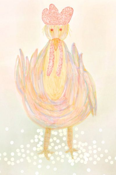 A colourful chicken that will look great in any child's room. A line drawing with a touch of pointillism style.