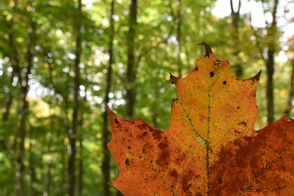 A maple leaf in autumn, Sainte-Apolline, Quebec, Canada