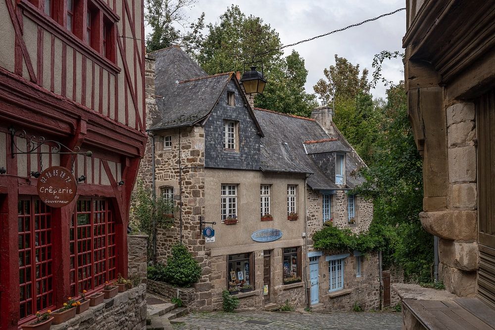 Buy the photo A medieval street in Dinan lined with old buildings by Manuuu on canvas, ArtFrame, poster and wallpaper, printed on demand in high quality.