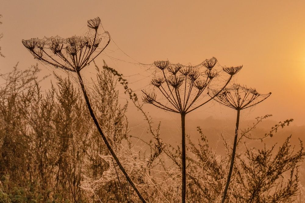 About "A misty sunrise with frozen plants in the foreground"