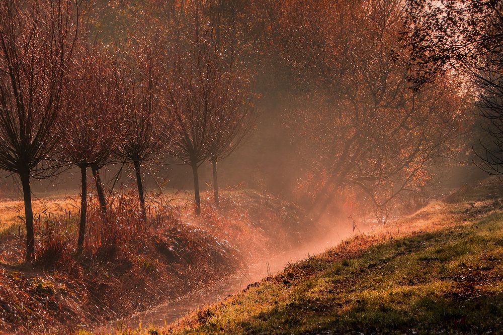 Buy the photo A misty sunrise by Stephan Scheffer on canvas, ArtFrame, poster and wallpaper, printed on demand in high quality.