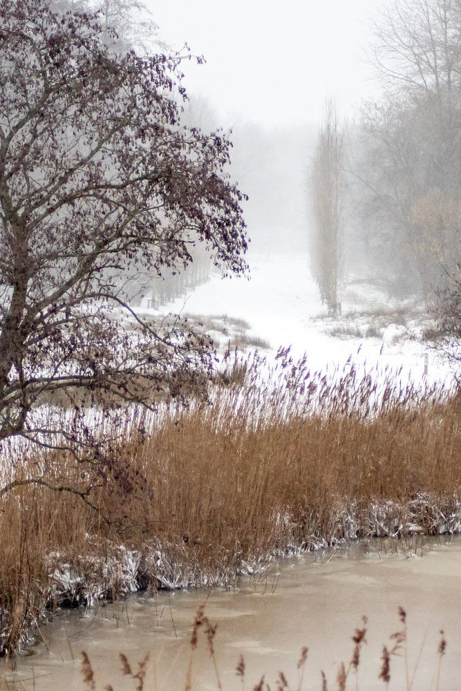 Close to my house in Zwolle you end up in nature. This kind of images can be seen when it snows heavily. The layers in this picture are that you can see the reed in the foreground and the water below. You look away in this image through the nature path exactly in the middle that runs between the trees.